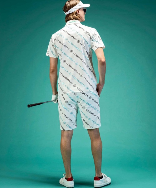 - ゴルフ > メンズウェア > LUXEAKMPLUS リュクスエイケイエムプラス ゴルフ 総柄ロゴ ポロシャツ LUXE AKM PLUS LUXEAKMPLUS リュクスエイケイエムプラス ゴルフ