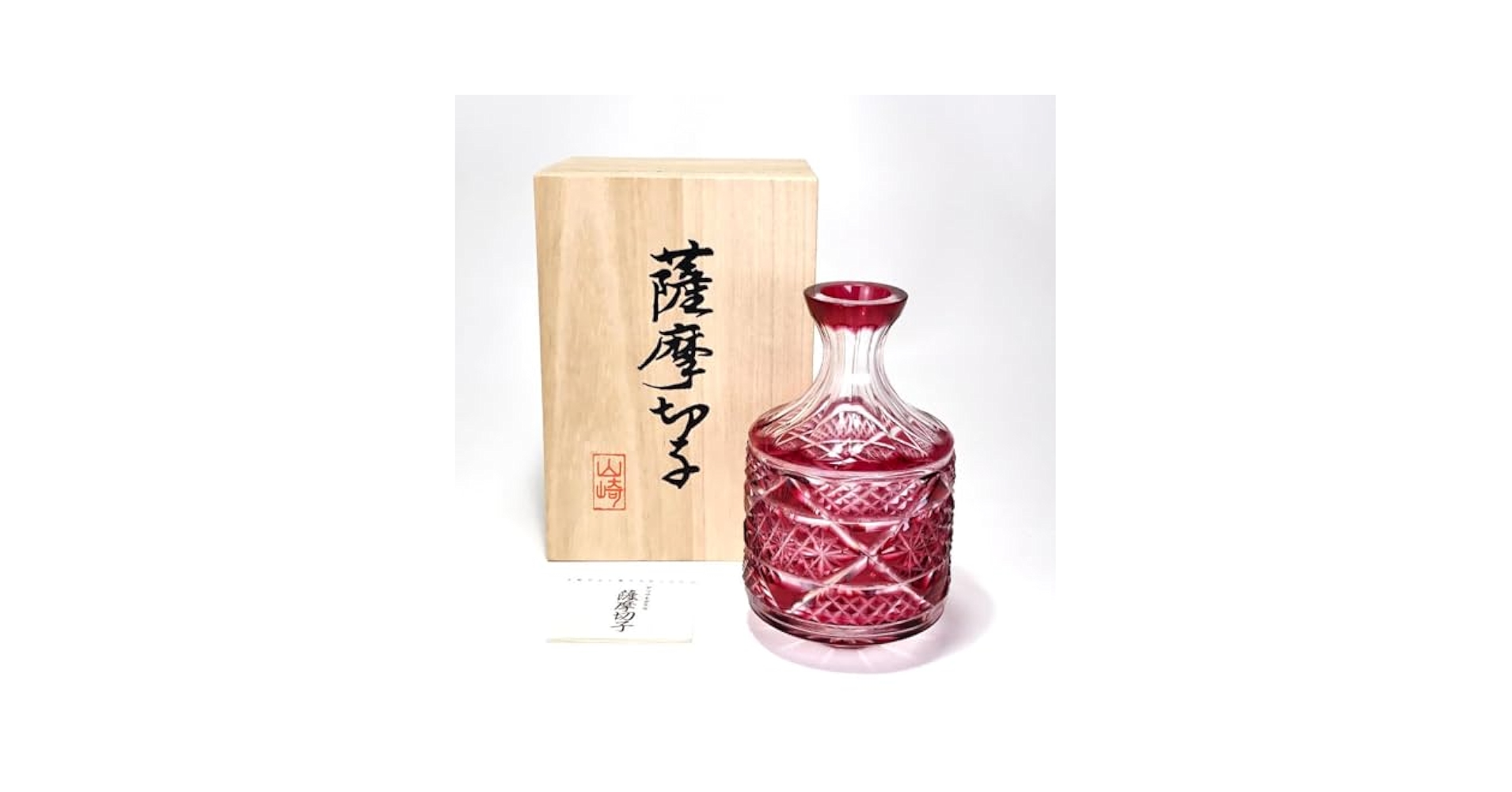 | メーカー | \"未使用\" ヤマザキガラス製 薩摩切子 南蛮赤 矢来籠目 菊透かし紋様 栞&共箱 |